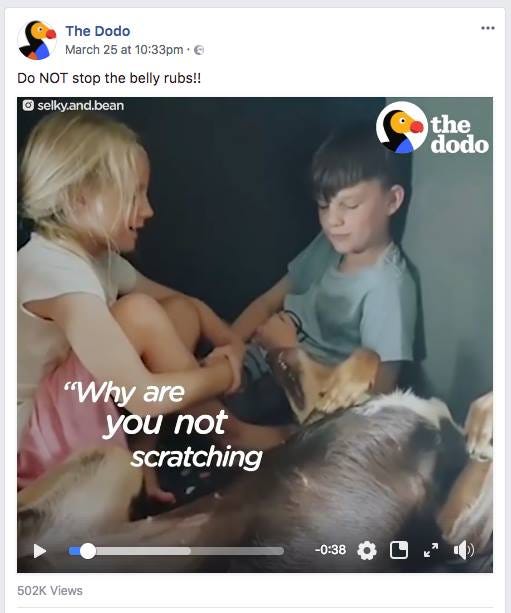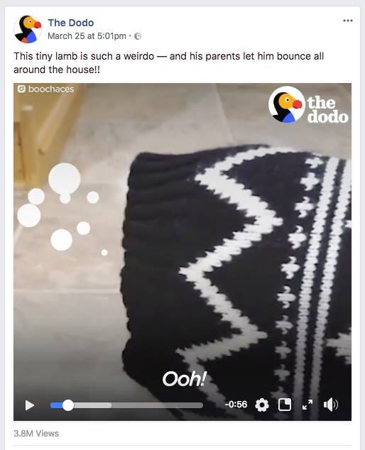 These first 3 seconds can make or break your content. Don't slowly build-up to a climax, you don't have time for that. Get to the point immediately. Your video will likely auto-play in the News Feed without sound, so try a big attention-grabbing on-screen title/caption.